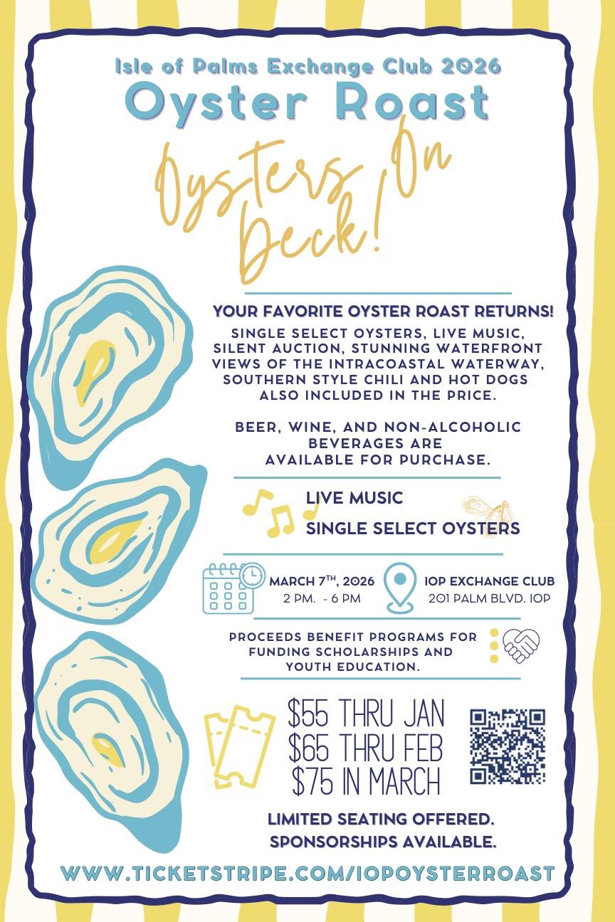 Buy tickets here: www.ticketstripe.com/IOPOysterRoast Proceeds from the Oyster Roast fund scholarships, given out every year to area high school seniors.